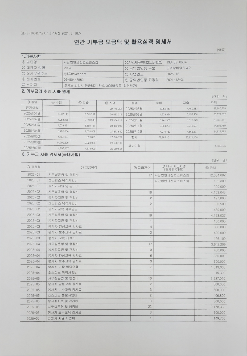 [°øÁö] 2025³â ¿¬°£ ±âºÎ±Ý ¸ð±Ý¾× ¹× Ȱ¿ë½ÇÀû ¸í¼¼¼